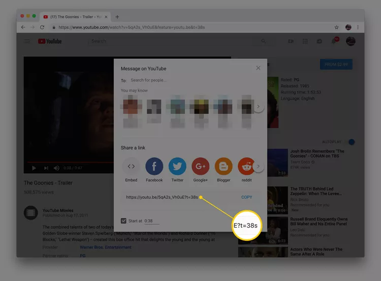 5. وقتی این آدرس جدید را به اشتراک میگذارید، ویدئو دقیقاً از زمانی که شما مشخص کردهاید پخش میشود. برای مثال، باز کردن این آدرس، ویدئو را از ثانیه ۳۸ آغاز میکند: