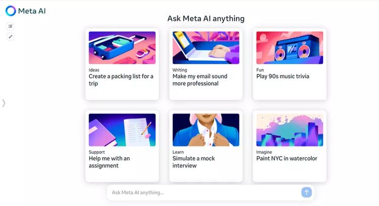 “the Meta AI Assistant” به سادگی از طریق نوار جستجو در پلتفرمهای ذکر شده قابل دسترسی است. شما میتوانید همچون گذشته از این نوار برای جستجو استفاده کنید، یا با آغاز یک مکالمه با “متا هوش مصنوعی”، از قابلیتهای پیشرفتهی آن شامل دریافت اطلاعات آنی، تولید تصاویر، و بسیاری امکانات دیگر بهرهمند شوید.