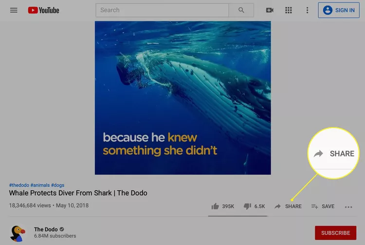 1. مستقیماً زیر ویدیو، روی اشتراکگذاری کلیک کنید.