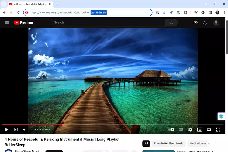 3. پارامتر زمانی را با فرمت مشخص زیر ایجاد کنید. به عنوان مثال، برای شروع ویدیو در ۱ ساعت، ۵ دقیقه و ۳۰ ثانیه، باید آن را به صورت زیر بنویسید: